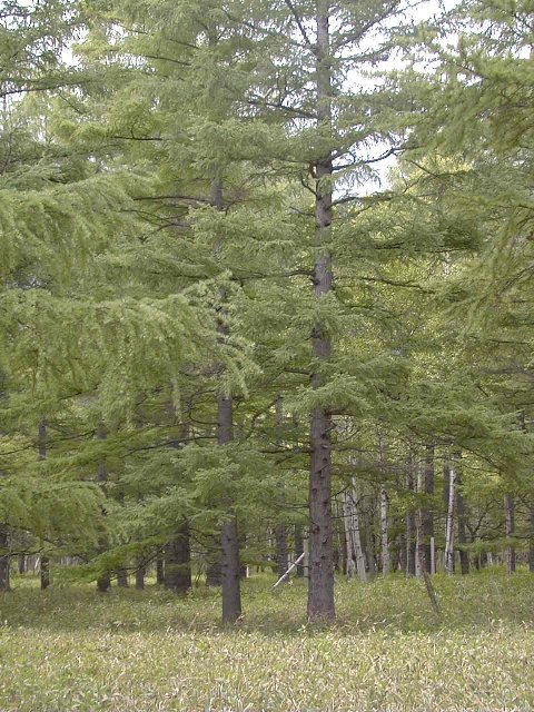 [人の作った森。カラマツが植えられている。]