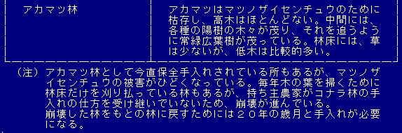 もしかすると、私が説明していることは、みなさんがはじめて聞くようなこ とが多いのかもしれません。でも、昔から、私たちの祖先がつづけてきた森の 姿を保つためには、昔の人たちがつづけてきた作業を、私たちも続けていく必 要があるのです。それが、さまざまな生き物の命を守ることになり、私たちを 守ることになるのです。 雑木林を大切にするということは、昔から続けられてきた方法で、手入れを することなのです。それにより、私たちに必要な生き物の世界をいつまでも守 っていくことになるのです。 (2001/01/07)[前のタイトル] [次ぎのタイトル] [ホ−ムペ−ジへ戻る]