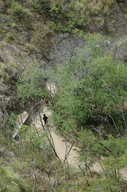クレ−タ−内の草木の葉は白っぽい感じだ!乾燥地だからか?