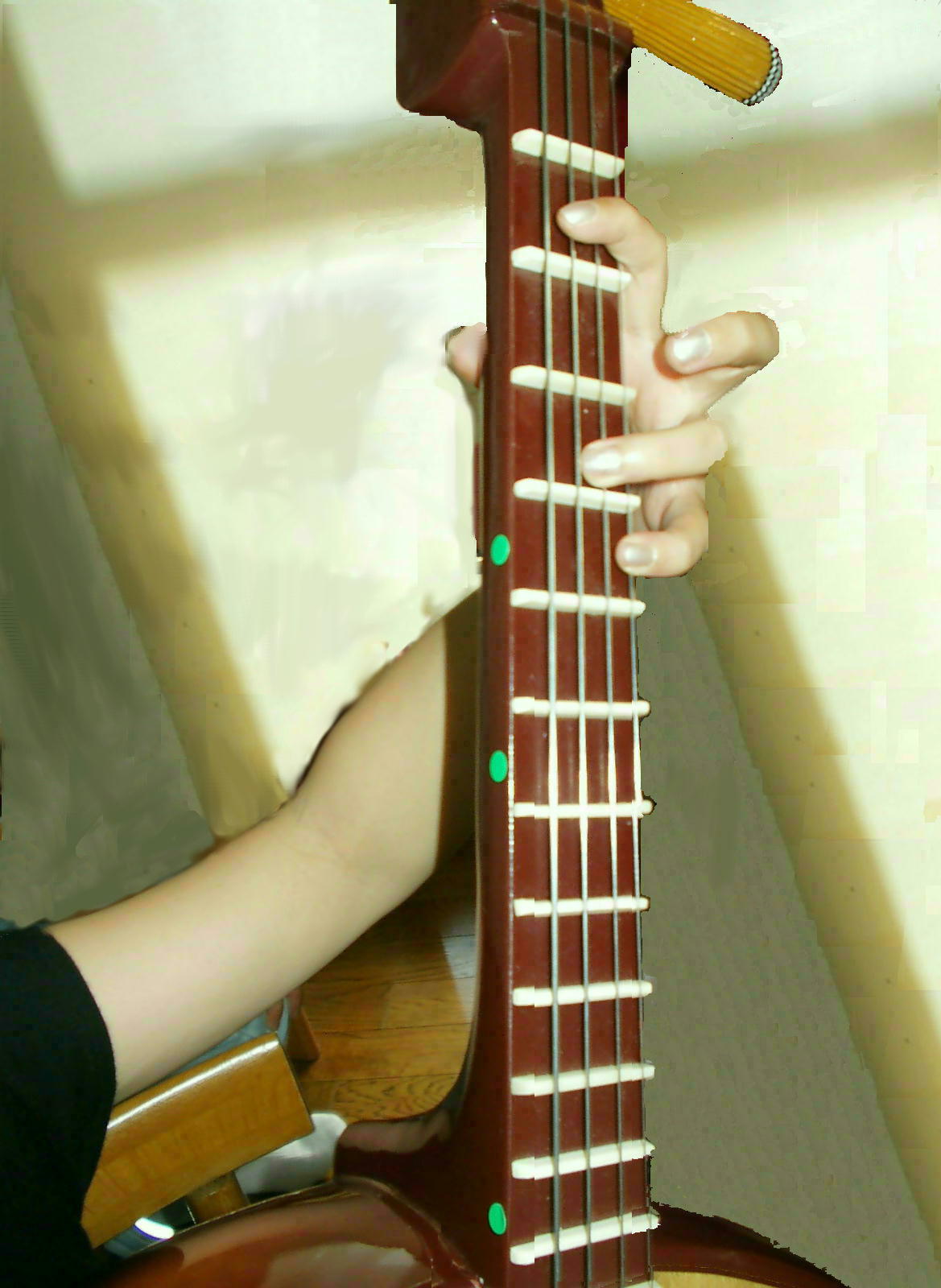 中国民族楽器紹介 阮(ruan) 小阮・中阮・大阮・低音阮の4種類があるそうですが,よく使われるのは中阮と大阮です。 ●種類:弾撥楽器。ピックを使うか,または琵琶のようにつけ爪をつけて演奏します。 つけ爪を使わず,自分の爪を伸ばして弾いてもいいそうです(痛そう・・・) ふつう,合奏では音をしっかりだすためにピックを,独奏では表現力を高めるために 指をつかうことが多いようですが,教則本などではどちらでもいいとかかれています。 中国の楽器の検定試験でも,特に指定はせず,受験者が自由に選べるようです。 ●楽器構造