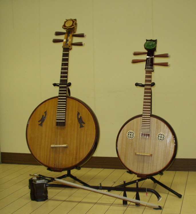 以下,同じように数本の弦をピックで弾くマンドリン族と比較ながら説明してみましょう。 ●大きさ:中阮・大阮の二つを比べてみてください。