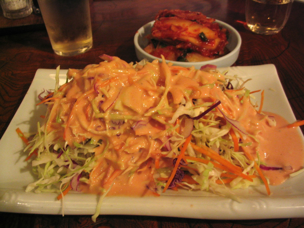 サラダ、みそチゲ、はくさいキムチ、ごはん