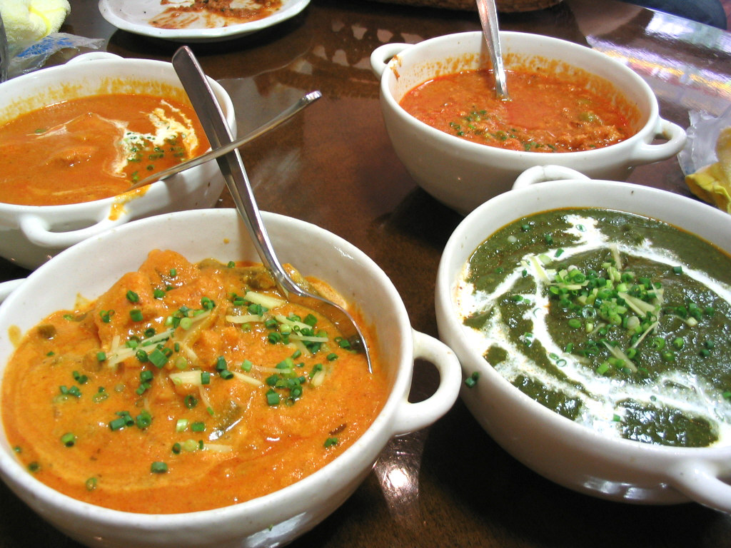 キーマカレー、サグチキンカレー、チキンカレー、野菜カレー、ナン、サラダ