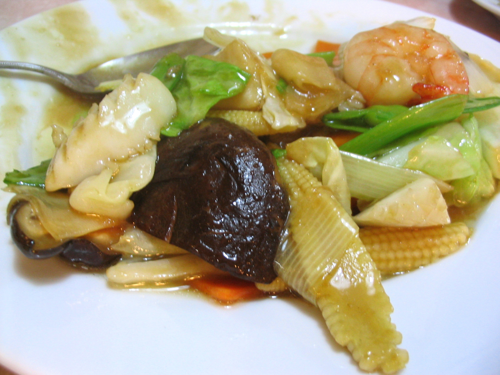 きのことチンゲンサイ炒め、カキの中華風おこのみ焼き、羊肉と葱の炒め、ごはん