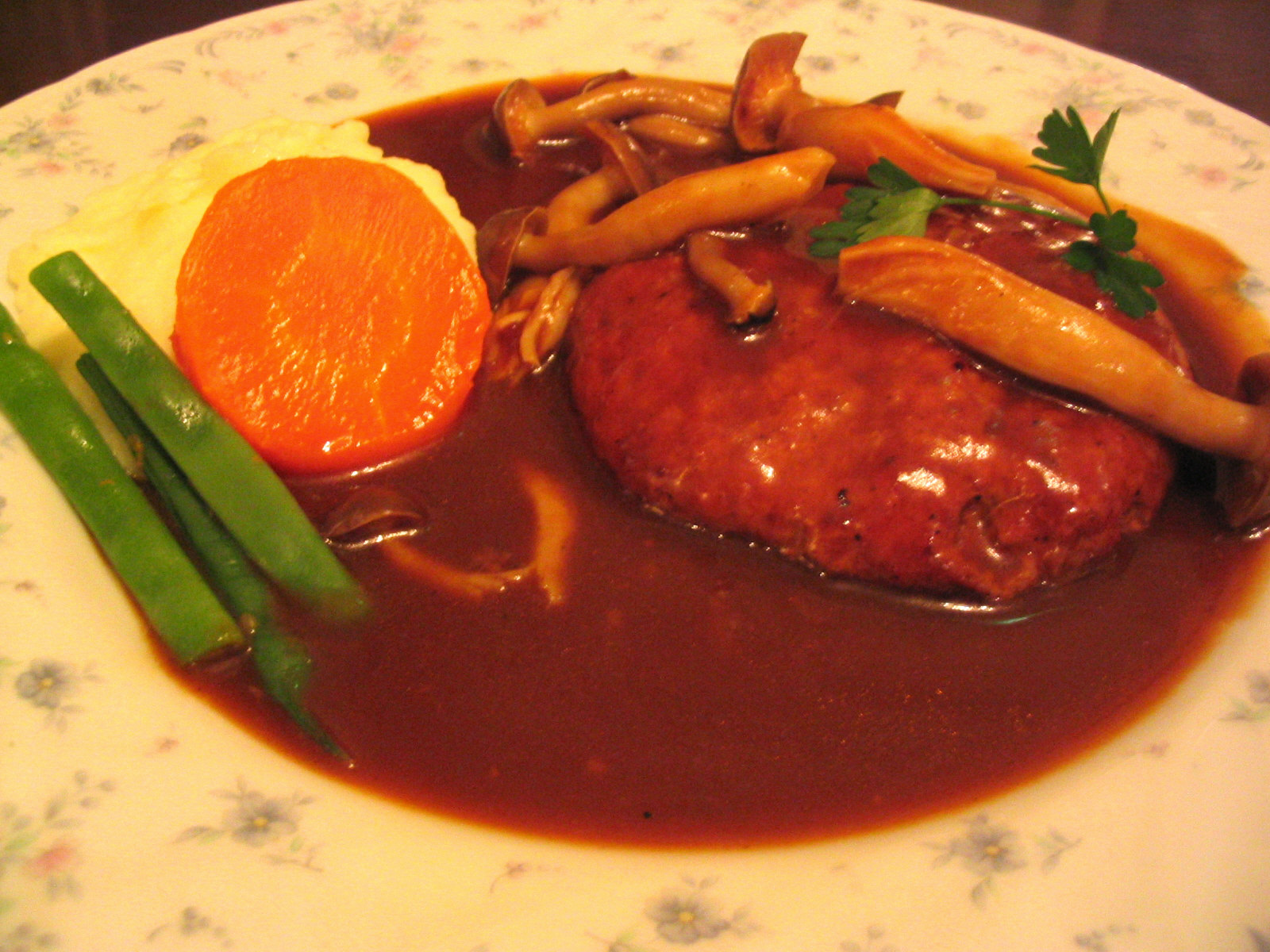 牛タンのステーキとしめじハンバーグ。