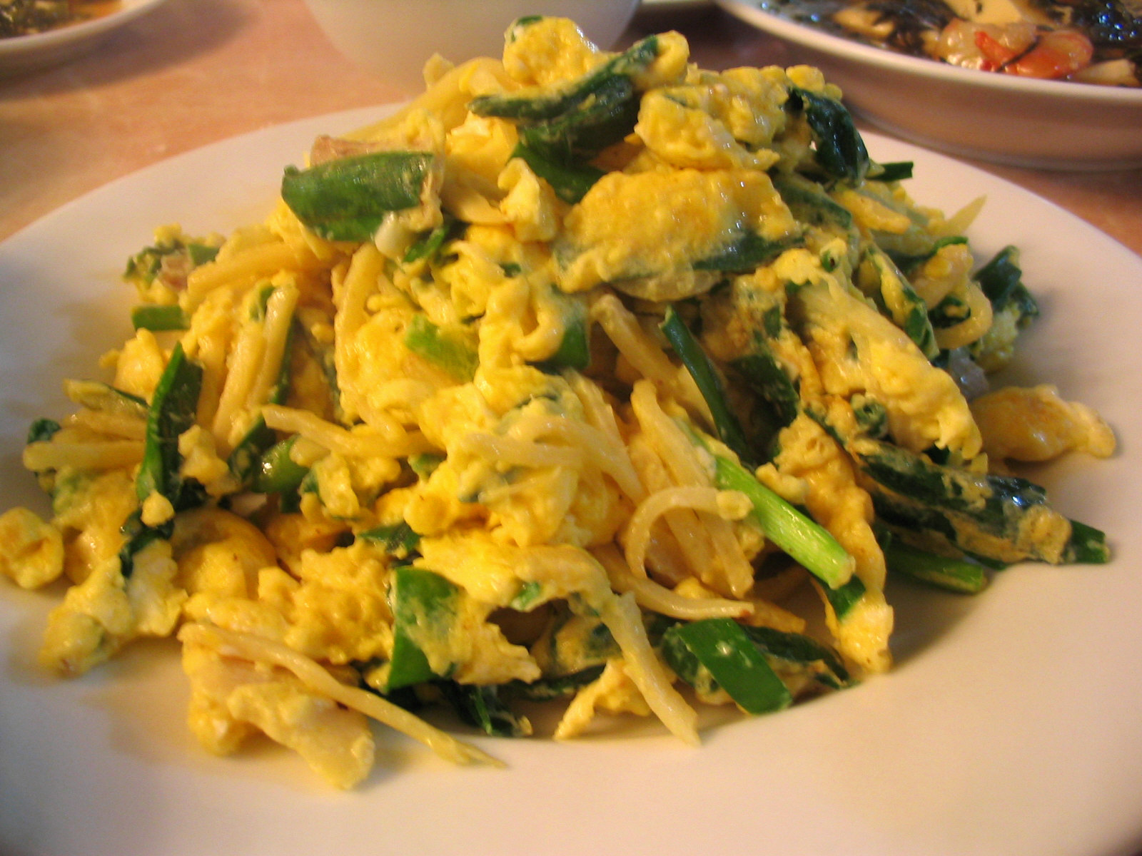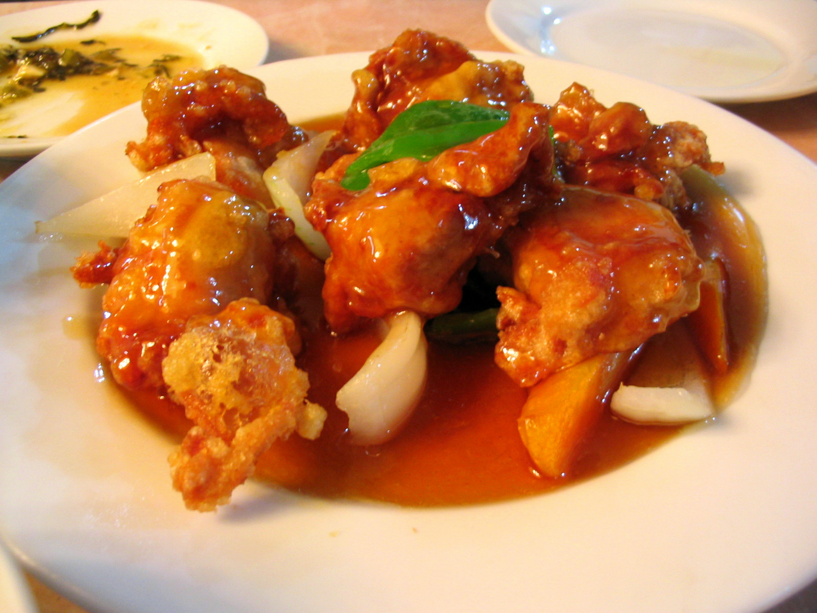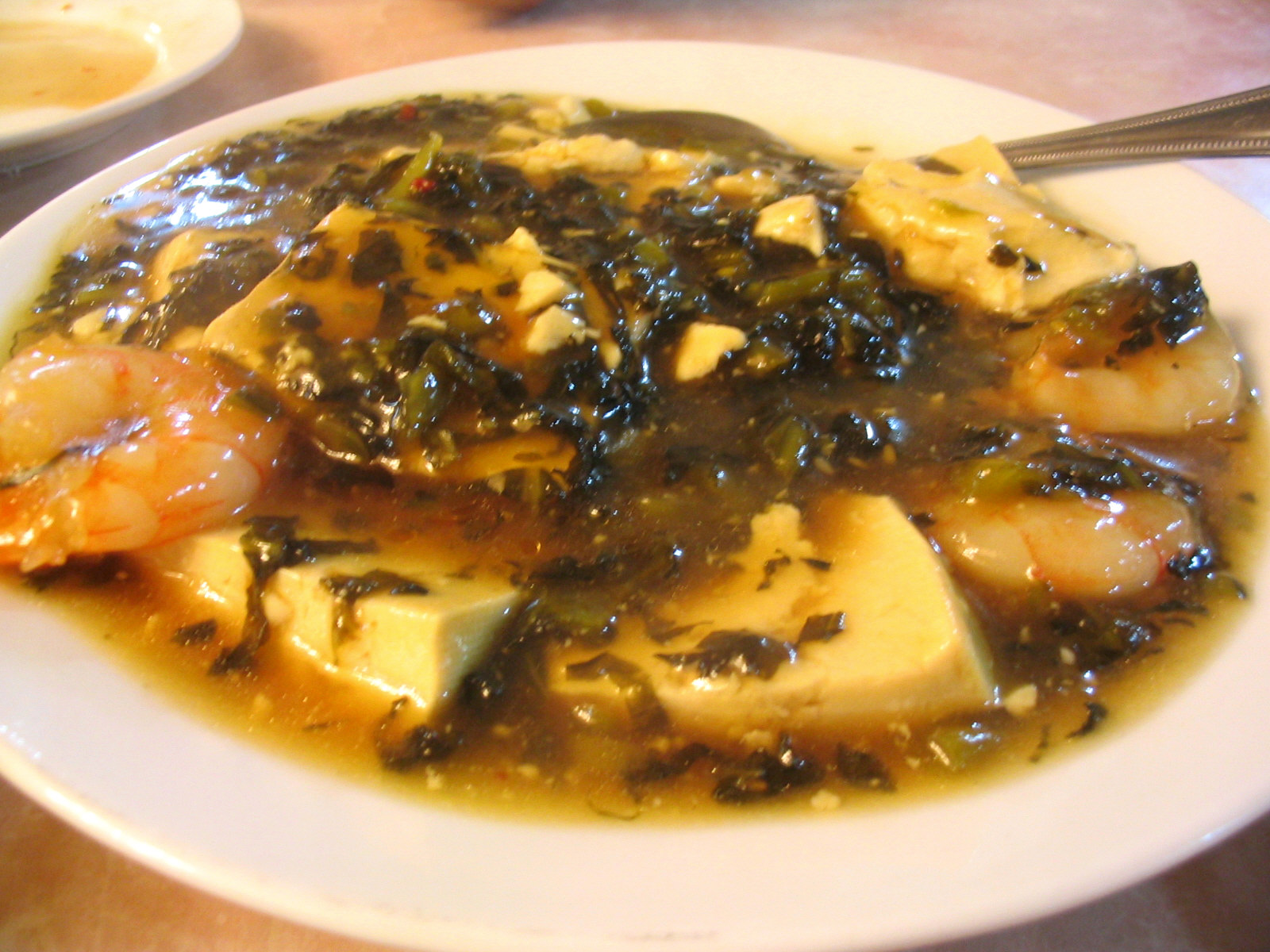 野菜と豚肉の炒め、高菜とエビと豆腐、玉子とニラ炒め、酢鶏揚、スープ、ごはん