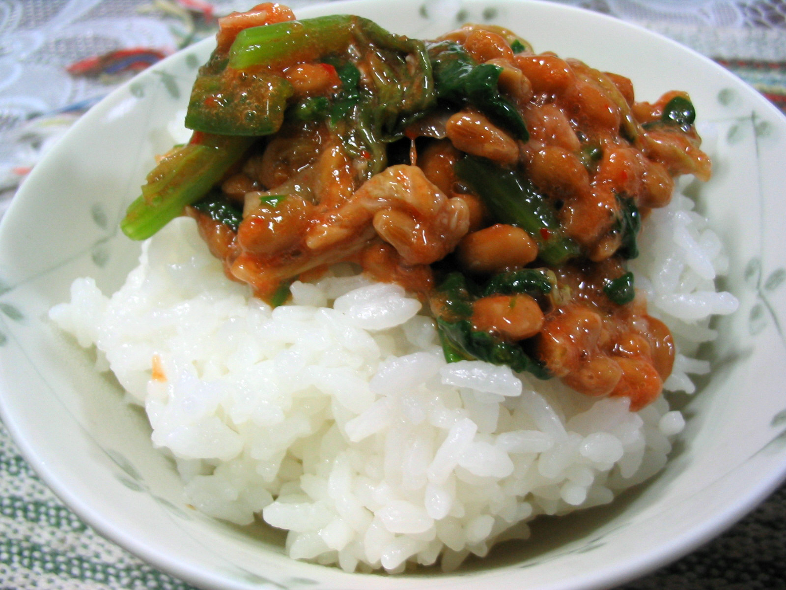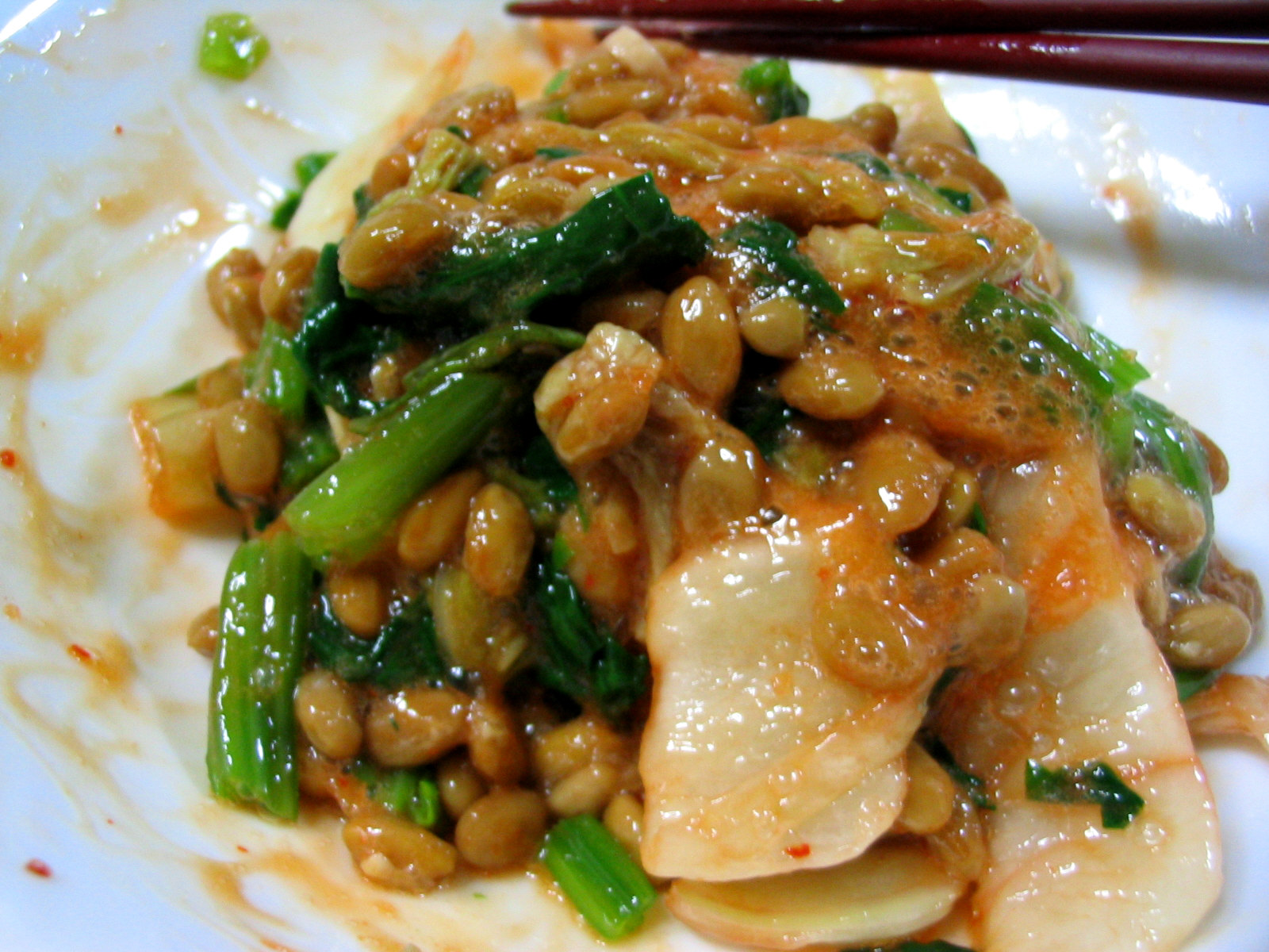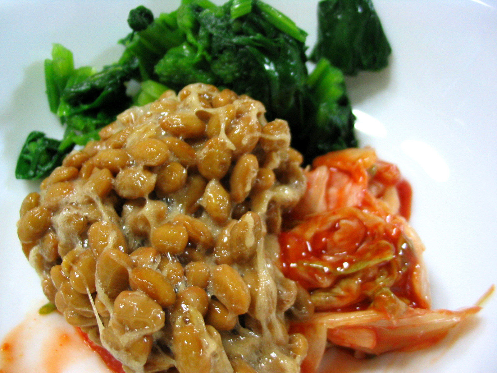 リファイバー、にんじんじゅーす(にんじん、りんご、ゆず汁)、キムチ納豆、