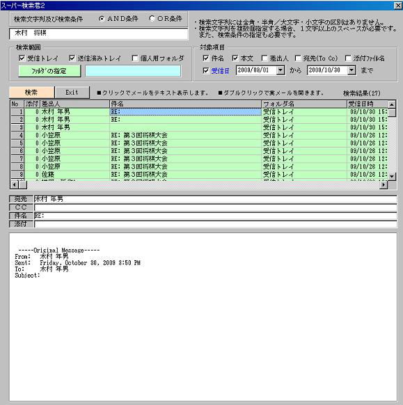 ■OUTLOOKの文章検索機能ではAND条件やOR条件が指定できなかったので、