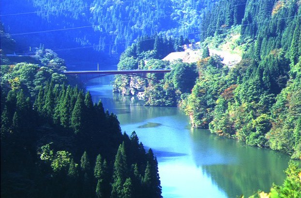 [99/10/26 西会津の森も水も清らかな渓谷を撮す。]