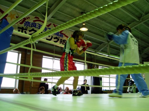 リングでシャドーボクシング。村井勇希選手の指導で。