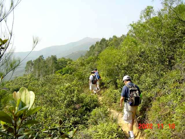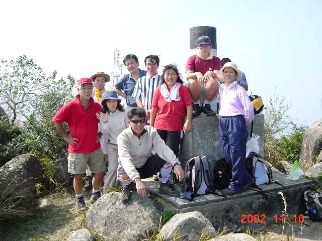 今日の天気は遠くが若干ガスってはいるが秋晴れの好天!集合した9名で海下路から元気に出発!老虎騎石から途中無名の岩山ピ-ク、そして石屋山まで順調に登坂!いつ見ても素晴らしい西貢の風景を堪能しながら尾根伝いの下りで"嶂上(Cheung Sheung)"まで。 嶂上はMHT-3-との交差地点でキャンプ場。ここから"嶂上郊遊徑"と呼ばれる道で林道を抜けると正面に"馬鞍山(Ma On Shan)"とその下の"企嶺下海(Kei Ling Ha Hoi)"の湾を見下ろす高台"アウ門"に到着。そして林の中の長い階段を下って最後は"榕樹澳(Yung Shue O)"と呼ばれる湾の近くの田園地帯に着く。延々と続く海岸沿いの舗装道を歩き、湾の一番奥"水浪窩(Shui Long Wo)"の手前付近でタクシ−を拾う。 ト-タル約10qの歩きでした。(MHT-3-:Maclehose Trail Stage.3) |