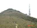 ↓石屋山頂上481mにて!無線設備などで思ったより狭い頂上ながら周囲の風景はさすがに素晴らしい!小休止の後下山開始。歩きにくいガレ道を下って行くと 、、、、、、、、、、前方に以前登った"畫眉山(Wa Mei Shan)"が↓ |