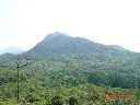 | ↓前方に見える岩山は?なだらかな坂道を登って行くと途中の丘の三角点に着いた。地図上では無名だが?(ひょっとしてここが老虎騎石かな?)目前の岩山を目指して急登坂!、、、、、、頂からはガスに霞むシャ-プピ-クや"赤徑"の海も! |