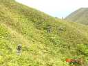 散々苦労した挙句にやっと米粉頂から東灣(Tung Wan)に下るガレ道途中に出る事が出来た。時間をかなりロスった為に東灣山登山は諦め、そのまま東灣のビ-チまで下山。東灣ビ-チから丘の上の海岸沿いの道を歩き大灣ビ-チに至る。大灣(Tai Wan)の長〜い砂浜を歩いた最後は"望魚角"(Mong Yue Kok)の岬。岬を越え終えるとそこは咸田灣(Ham Tin Wan)だったッ!その後は元来た大浪凹(Tai Long Au)まで坂道を登り。そしてフェリ-ピアの沙頭(Sha Tau)まで下る御馴染みMHT-2のコ-ス。Finishして約10km強の歩きだった。後ボ-ト、バスと乗り継いで西貢(Sai Kung)に着いたのは薄暗い夕暮れ時でした。 (注:MHT-2=Maclehose Trail Stage-2-) |