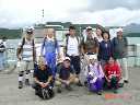 | 西貢に戻ったら天気は回復しほぼ晴天!さっきの雨がウソのようだッ!ここで二人の仲間は帰路へついたが、諦めきれない残った9名は西貢の海岸で船客待ち中のオバサンとネゴを開始!島南側の"KAU西"まで往復料金HK$40/人で交渉成立!(因みにゴルフ場行きの立派なフェリ-はエアコン付きで往復HK$50/人)最初からこうすれば良かったのに!と後悔しきり!オバサンの旦那と思しきオッサンが操舵するボ-トは30分で"KAU西"に到着。それから2時間の予定でハイキングスタ-ト。ほぼ尾根伝いのル-トは小アップダウンを繰返しながら"KAU西"から北側のゴルフ場近く迄一直線に続いている。おまけに幅1.5m程の歩道のような舗装道路が出来つつある。ゴルフ場が見える地点まで同じ道を往復したが素晴らしい景色を楽しむ事が出来た。約束どおり5時きっかりに我々を迎えに来たオシドリ夫婦のボ-トで西貢に戻ったのが5時半だった。総計約10qの歩きでした。 |