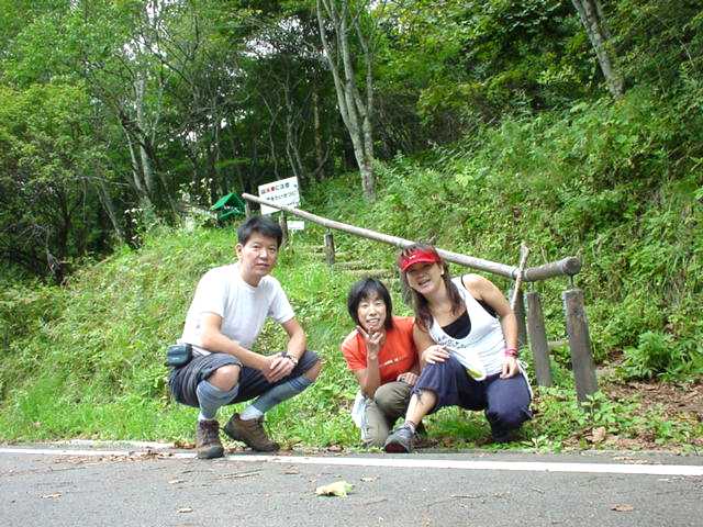 | 写真左から、大峠、出発前の元気なポーズ、一生懸命歩きます、頂上手前より、旧500円札と同じ?、バックは見えませんか?、頂上記念写真、 |