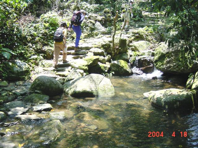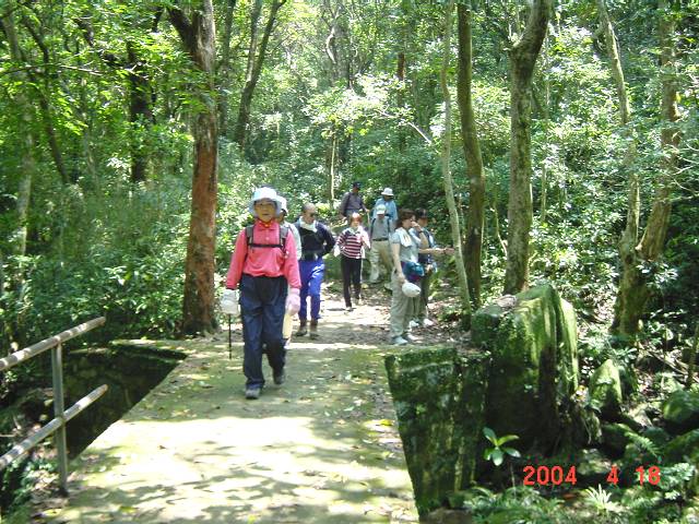 香港六大珍名山【注:最下段】 の一つ、『ババア−は女に決まってるのに何故か?“女婆山”』 は馬鞍山麓の西端の谷“梅子林”(Mui Tsz Lam) と“沙田” (Sha Tin) との間に位置するどちらかと云うとあまり知られていない低山。前回は地図のとおり“沙田”から登って下山も“沙田”に下ってきたが、あまりに短距離だったので今回は若干遠回りコ−スとして“馬鞍山”への登山コ−ス、“馬鞍山村”(Ma On Shan Tsuen)から“昂平”(Ngong Ping)高原を経て“芽坪”(Mau Pin)へ、そこから“梅子林”まで一旦下ってそこから“女婆山”ピ−クを目指す変則ル−トとした。 KCR“大學”(University)駅からタクシ−3台に分乗して“馬鞍山村”まで。そこから“昂平”までのお馴染み登りコ−ス、“馬鞍山”への中継点からMHT-4-に乗ってしばらく“昂平”高原のノンビリ散策。さらに“西貢”(Sai Kung) の“大水井”(Tai Shui Tseng)方面への中継点を通り過ぎて“白沙灣” (Pak Sha Wan) のヨットハ−バ−を眺めながら“芽坪”までの山麓歩き。ここでMHT-4-から外れ、今度は“梅子林”までの林道を下る。林道の最後“梅子林”の村落まで下山したら、そこから谷間の渓谷沿いの登り坂が続く。そしてここで初めて“沙田”から“黄泥頭” (Wong Nai Tau) 経由“花心坑” (Fa Sam Hang) からの“女婆山”登山ル−ト途中である"女婆アウ”(Nui Po Au)、“牛凹”(Ngau Au) 付近の峠に到着。 これからが本格的な登りとなり、大岩の傍の急坂を登って行ってやっと“女婆山”肩へ。あとは目前のピ−クまではなだらかコ−ス。頂上からの眺めは低山ながら絶品! 西側下には“沙田”の街並み全景、反対側後ろ(東側)には雄大な“馬鞍山”の山並みと“石芽山”(Shek Nga Shan) の切り立つ稜線が迫る。下山は前回と同じく“沙田”側に向かったが前回より一つ手前の尾根伝いに下ってみた。しかし結局最後は前回と同じく“突破青年村”(Breakthrough Youth Villege) と云うカトリック関係の施設の近くの車道に出てFinish。計約8q程の歩きでした。幸い直ぐに来たミニバスに飛び乗りKCR“沙田”駅へ。駅ビル内の上海料理屋で最後の締め括りでした。 (MHT-4-:Maclehose Trail(麥理浩徑) Satage.4) |