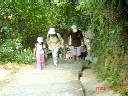 ↓往きのフェリ−の中にて[写真No.01]。“榕樹灣”埠頭で出発前の記念写真を撮り、海鮮屋やお土産店が立ち並ぶ路地[04] の雑踏を通り抜けて最初の道を左折、、、民家の脇に咲き乱れる草花を見ながら、、、 ↓しばらく行くと名物の"豆腐花"屋さん、早速親子でご賞味![09]。 そのまま畦の小道を進むと間もなく発電所近くの海岸[13]、、、この辺りも綺麗な花が咲いている。 ↓コ−スはこの海岸から登り坂となる。坂の途中、右手下の岩場では釣り人が糸を垂れ[15]、その沖合いには水上スキ−に興じる若者? 坂道を元気に登る子供達、、、この路肩も花イッパイ! フシの間隔が極端に狭い珍しい竹なども[20]、、、子供の歩きに合わせてユックリ歩くと、普段目に入らないいろんな物が目につくね〜! ↓長い坂道を登り終えたら峠の東屋に到着[23]。ここで小休止! 遠景は残念ながらガスで霞んでいるが、、、子供達は大喜び! 皆で記念写真を撮ったらさぁ〜出発! 山麓の細道を行く一行[26]、[27]、その遥か向こうにはガスに霞むラマ島最高峰の“山地塘”(Shan Tei Tong、 英名:Mt.Stenhouse) 353m も見える。麓の小道が終わったら今度は下り坂、左手下の埋立地も随分綺麗に整地されていた[28]。 ↓道は曲りくねった山中腹の下り坂、、、途中の東屋で[30]〜[32]、、、左手下の“索罟灣”[33] を見下ろしながらさらに下り坂は続く。林の中の遊歩道を下り切った所、小店脇から左折して民家の脇を抜けると、、、 ↓“索罟灣”沿いの小道の途中、右手の洞窟はその名も“神風洞”[36]! 戦時中に旧日本軍が掘ったとか? 今回は立派な案内板まで立っていた。ヤな感じだったので案内板は撮影せず! 灣”沿いの道を前進、、、間もなく“天后廟”の広場に出た[40]。ここで二人の女の子の様子を見るとまだかなり元気そう! ならばもう少し歩こう、とこの広場の右手“東澳”(Tung O)への標識に沿って今度は階段を登りだす[42]! ↓7歳の妹さんは元気! 階段を休みもせずにヒョイ、ヒョイと登って行く[43]。こちらの方が息切れ、フッ−! 林道の坂道登りが続く、、、 林を抜けると前方に大きな岩と東屋[46]、[47]、もう少しだッ! 間もなく全員が“菱角山”の麓の東屋、標高136mに到着。 ↓この東屋で小休止、はしゃぎ回る子供達、大岩の上で全員記念写真[52]、“孫娘に囲まれて”ご機嫌なジ−チャン[53]、、、これより東屋の下から標識[54] に沿って“菱角山”を目指して階段登りが続く、、、。 ↓右手下の方に“東澳灣”[57]。お姉ちゃんの方は植物採集で忙しい[58]! 長〜い階段を登り終えたらアンテナ林立の“菱角山”の尾根[59]、250mの三角点[60] を通り過ぎて、、、左下手は“東博寮海峡”(Tung Pok Liu Hoi Hap) [61]、そしてその向こうは香港島[62]のアバディ−ン方面だがガスに霞んでいる。快適な尾根歩きが続き、、、 ↓途中の東屋には先に着いていた妹チャンが待っていた![64]、、、尾根歩きの最後は不思議な大岩が散在する箇所を通過、、、そしていよいよ下山コ−スの階段下りが始まる。真下の“模達灣”をバックに記念写真[68]、[69]、、、長〜い階段下りが続く、、、 ↓やっと階段の終り、この標識[72] から左手へ、、、バナナ園を抜けて[74]、[75]、、、“模達新村”と呼ばれる村落、ここも花イッパイ! ↓花を眺めながら民家脇の坂道を登り、、、ふと後ろを振り返ると“模達灣”[80]、たしかあのビ−チにもウエスタン系のレストランがある、と聞いた事が有るが? しばらく行くと林道の舗装小道が続き、、、やがて右手“索罟灣”沿いの長〜い直線道路。さすがに疲れたか? 可愛い“孫の手”を引く優しいお爺チャン![84] ↓そしてやっと終着点、“漁村”の看板は行きつけの海鮮レストラン“Hilton”の裏口に到着! 約9q弱の歩きでした。皆で楽しく打上げの“麦酒”。子供達はコ−ラで乾杯! ここでユックリのんびり昼下がりの一時を過して、帰る頃は“索罟灣”に夕日が沈む頃でした。 |