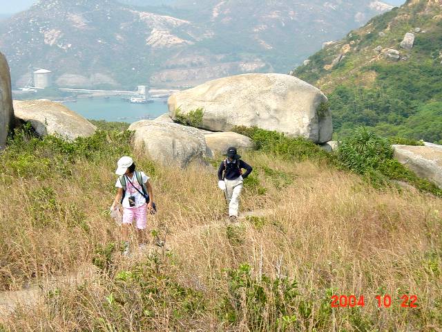 たまたま偶然か?“菊の節句”に因んでか? この日は初参加の親子連れ(お母さんと小学生の娘さん二人)のハイキング参加希望があり、“南Y島”(Lamma Island)、通称ラマ島へ行く事に! 気温27度、湿度も80%弱で晴れ。“中環”(Central)の4號埠頭に集まった仲間はこの親子連れと他に5人の計8名。9時半発のフェリ−で出発。約35分でラマ島の“榕樹灣”(Yung Shue Wan)に到着。先ずは“榕樹灣”埠頭近くの海鮮屋やお土産店が立ち並ぶ路地の雑踏を通り抜け、発電所近くの海岸に出る。そこから舗装路の登り坂となり、峠の上の東屋に到着。そして今度は下り坂となって下り切った所の村落を抜けたら“索罟灣”(Sok Kwn Wan)の海岸。 ここで二人の女の子を様子を伺うとなかなか元気! ならばラマ島周回コ−スも歩けそう? とここから階段と舗装坂を登って“菱角山”(Ling Kok Shan) の麓の東屋がある休憩地点標高136mまで。若干ガスで霞んではいるものの、相変わらず素晴らしい眺め、女の子達は喜び、はしゃぎ回っている。そこから今度は長〜い舗装階段を登って“菱角山”250mへと向かう。“菱角山”の尾根を歩く間、北側の香港島や南側の大海原の景観を楽しみながらの歩き。 尾根道の最後、無線塔を過ぎた辺りから今度は長〜い階段下り、下り切った場所が“模達灣”(Mo Tat Wan)近くの村落、これより海岸脇の舗装路を延々と歩いて最後は“索罟灣”に舞い戻る。一番手前、埠頭から見て一番奥のいつもの海鮮屋“ヒルトン”に着いて今日の歩きをFinish、女の子達は約9q程の歩きをしっかり完走しました。打ち上げ会、今日は“重陽節”、大人たちは“菊酒”ならぬ“麦酒”を呑んで海鮮料理を食べ、ノンビリと気だるい午後の一時を過しました! |