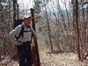 | 【15】丸山から見る武甲山と奥秩父連峰、【16】堂平山〜その向こうが田幡邸方面です、【17】絶景に気をとられて記念撮影忘れてました、【18】花粉症と戦う女史、【19】ルンルンに下ります。その後の悲劇も知らず・・・、【20】道の途中に突如「柵」が・・・・、【21】行政ともめた地権者が実力行使か?仕方なく道なき道で大格闘 |