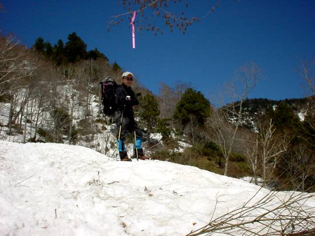 | 写真左から【01】林道の終点、【02】本格雪道の開始、【03】三平峠へ向かう道、【04】青空に感激、【05】下りの登山者に撮ってもらう、【06】小学生以来の再来です、【07】雪に埋まる三平峠 |