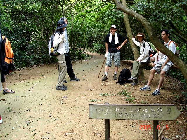 出発地点は“大埔公路”(Tai Po Rd.)のバス道路脇、“鷹巣山自然教育徑”(Eagle's Nest Nature Trail) の入口。ここはMHT-5-の終点でもあり、有名な猿山“金山公園”(Kam Shan Park) に隣接した場所。今日も沢山のサル達の歓迎? を受けながら雨上がりの林の中を40分程も歩き、お次は長〜い階段登りの始まり。段差の高い階段を汗ダクになって登って、やっとビ−コンヒルの頂上到着。それからライオンロック麓の東屋まで所々石段の下りと、右手眼下の九龍の街並みを見下ろしながらの山中腹の林道歩きが続く。そして“ライオンロック”麓の東屋に到着。予定ではここから直接“望夫石”に向かう筈だったが、気温も低く参加者9名全員元気に“ライオンロック”も挑戦しよう! とアタック開始。 再び汗ダクになりながら急斜面を登り、最後の岩を攀じ登って30分程で495mの頂上着! 曇天ながら比較的視界は効き風景を眺めた後、元の東屋まで下山。次はMHT-5-から外れ“望夫石”を目指す。観光ガイドでも紹介されているこの奇岩は、『猟師の夫の帰りを赤ん坊を背負って待つ妻の姿!』 そんな古い言い伝えがあるとか? その直立した大岩を木々の間に垣間見ながら林道を下って行く。 到着したその岩は心無い者の落書きだらけで単なる汚い大岩。そこから林道を下って最後は“紅梅谷”(Hung Mui kuk) のバ−ベキュ−サイトに出てた。“獅子山隊道公路”(Lion Rock Tunnel Rd.) からバス停に着いて今日の7q強の歩きをFinish! バスにてKCRの最近出来た新路線、“沙田圍”(Sha Tin Wai) まで移動。さらに“九龍塘”(Kow Loon Tong)〜“佐敦”(Jordan) と移動して最後の〆は“佐敦”街中のB級グルメでした。 (注:MHT-5-:Maclehose Trail(麥理浩徑) Stage-5-) |