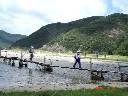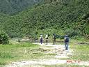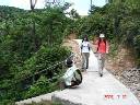 ↓“西貢”からのタクシ−終着点、お馴染み“西灣亭(吹風アウ)”【写真No.01】で出発前の記念写真! タクシ−代も4、5名で相乗りすればミニバス代と変わらない。東屋の左手、この標識【02】がある奥まった所から舗装された小道が続く。右手下方のダムは“萬宜水庫”【04】、、、下り坂が続く、、、そして谷部から階段を数段上がるとそこが“吹筒アウ”【06】。ここで“浪茄灣”(Long Ke Wan)から始まるMHT-2-の途中に合流、早速小休止、、、とにかく暑いッ! ↓今度は前方に“西灣”を望みながら【08】下り坂が続く、、、下りきって田んぼの畦道風を抜けたらそこは“西灣村”【11】、目の前は“西灣”ビ−チ、夏の海と空が眩しい! 冷たい潮風、白波の先には“東灣山”(Tung Wan Shan)【12】! しばし砂浜の感触を楽しみ、、、 ↓左手の村落を抜けてビ−チに沿っての歩き【17】、、、砂浜のすぐ傍まで草花が群生している、、、海岸の端まで行くと引き潮の時には対岸の崖まで渡れるが今は満潮か? 直接渡れないのでやむなく一番左奥手、入り江のようになった所へ向かう【19】 ↓入り江でなくて海へ通じる川だった! 石橋を渡って【22】対岸まで、、、そしてなだらかな登り坂となる。途中振り返ると今歩いてきた“西灣”ビ−チと周辺の山々【23】。右手の“大浪灣”に浮かぶは“西貢”の“夫婦島”ならぬ“大洲”(Tai Chau)、“尖洲”(Tsim Chau) の二つの小島【25】、、、登りル−ト途中に有る“麥理浩徑”の標識【26】、、、20分程登りつめたら峠に到着。、、と、突然前方に現れた“シャ−プ・ピ−ク”の雄姿!【28】 ↓峠を越えてさらに進むといよいよ今日のコ−ス最大の見せ場となる。“咸田灣”の真っ白なビ-チと突き出た“望魚角”、その先には“東灣山”【29】、その左手には“シャ−プピ−ク”【30】、、、ここで恒例の記念写真二発。山の中腹の曲りくねった細道、断崖を覗きながら【33】ビ−チまで下り道は続く。 “咸田灣”の砂浜に降り立ってビ−チを行くと“咸田灣”名物? 朽ちかけた板切れ橋【36】、何年経っても変わってないな〜! ワザと修復しないのかな〜? この板切れ橋を恐る恐る渡る一行【37、38】、誰も落ちなかったッ!(^_^)! そして茶屋で小休止【39】。涼しい潮風に吹かれて眠気を誘いそう! このままビ−ル飲んで昼寝したい誘惑を断ち切って、いざッ出発! 海岸傍の小店の脇を通り抜け、マングロ-ブが生える小川の側を進む【42】、近づく“シャ−プ・ピ−ク” ↓“北潭凹”まで5qの標識【44】を通過して古い民家の“大浪村”村落を抜けると“赤徑”の標識【46】から左手、ここからなだらかな林道の登り坂となる。森の中の小道は続く、、、この長いダラダラ坂は冬場はそうでもないが夏場は結構苦しい、、、噴出す汗!、、、“連れ合い”は大丈夫か?、、、 間もなく視界が開け前方に見えてきた山は? そうだっ、“大蚊山”(Tai Mun Shan) だッ!【49】 ↓左手には“夫婦島”と“大浪灣”【50】、そして右手頭上には“シャ−プ・ピ−ク”の稜線【51】、、、そして“大浪凹”の峠の東屋に到着【52】。ここでしばらく休憩! さぁ〜後は“赤徑”までの下り道!、、、ルンルンの下り林道、、、前方に見えてきた“赤徑”の湾【54】、、、このル−トも以前は舗装してなかったのになぁ〜、、、間もなく下り道の最後、麓付近の三叉路に到着【56】 ↓MHT-2-はこの三叉路を直進して最後は“北潭凹”へ至る【57】。ここで「元気4人組」が“北潭凹”へ、残った「疲れ5人組」はここから右折して“沙頭”(Sha Tau) のフェリ−ピアへ向かう【58】。フェリ−ピアで船の時刻表を見るが?、、、面倒なのでいつものように“流しのタクシ−”ならぬボ−トを呼んで乗り込む、、、暴走ボ−トは海面を疾走してアッと云う間に“黄石”到着【62】。ここから始発のダブルデッカ−に乗るつもりだったが、運良く居合わせたタクシ−に乗り込んじゃった【63】、一路“西貢”へ。 ↓“西貢”でしばらく待つうちに“北潭凹”まで歩いた「元気4人組」も到着! 合流してイザ、最後の打上げ! 今日は以前良く利用していたイタメシ屋に飛び込む。いやぁ〜、冷たいビ−ルの美味いこと! |