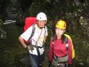 | 【08】「マイモーズの悪場」をひとまたぎする野口さん。。※ここは野口さんだけが行けるところで後の人は見ているだけですからご心配なく、【09】野口さん、かっこいいです、【10】薄井さん、ちょっと顔がひきつってませんか?、【11】足が出ない薄井さんと待ち受ける野口さん、【12】「キャー!引っ張ってー!」、【13】やはり今日は水が冷たい!、【14】もうヤケクソ気味の女史 |