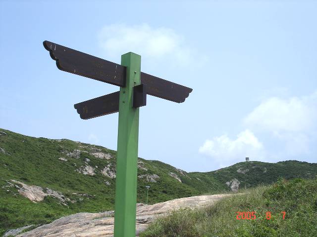 “中環”(Central) の日本領事館のある“Exchange Square”の下にあるバス乗り場から昨年と同じく"赤柱砲台"(Stanley Fort)行きバス"6A"に乗る予定だったが、いつの間にか日曜日の"6A"は廃止になっていた。止む無く"6"の“赤柱”(Stanley)行きでスタンレ−まで、そしてタクシ−3台に分乗して“黄麻角道”(Wong Ma Kok Rd.)の“聖士堤反灣”(St.Stephen's Beach) の埠頭へ向かう。小さな埠頭から10時丁度、二階建ての小型ボ−トで40分程かかる香港最南端の島“ポ−タイ島”へ。船の甲板上で潮風に吹かれながらノンビリ船旅、しかし今日の海はうねりが高くボ−トはかなりの揺れ! 40分程で“ポ−タイ島”に到着。 桟橋の立派な標識は蒲台が"苔"となっている。即ちこの島は海草、海苔の産地! 桟橋傍の民家の裏から舗装された階段を登り出す。渓谷脇の坂道階段を登って行くとやがて大きな岩の上に出る。その大岩の上の歩いて行くと直ぐに“牛湖頂”(Ngau Wu Teng) と呼ばれる峠。そこから右側の尾根伝いの歩きとなってしばらく行くと直ぐに三角点と休憩の東屋。200m弱の単なる丘だが、眺めは素晴らしい! 南シナ海の大海原と遥か彼方には中国領の島々。時間はタップリ! ここでユックリ休んで景観を楽しんだり、お喋りしたり。 その後緩やかな階段下り、目前に広がる素晴らしい景観を楽しみながら島の南側に向かって下って行く。海岸間近の“昴装”(Ngong Chong) と呼ばれる半島のクビレ部分まで下ったら、今度は半島の丘の上までの登り。再度下って半島突端“南角咀”(Nam Kok Tsui) 近くの大きな岩場で遊ぶ。そこからル−トは帰路となり、岬途中の奇岩“佛手岩”(Buddha's Palm Cliff) を見物し、海岸沿いの道を元来た船着場付近まで戻って今日の歩きを終える。埠頭のちょっと先の海辺のレストランで名物の海苔ス−プを味わい、4時半発のボ−トで香港スタンレ−に戻ってきました。 |