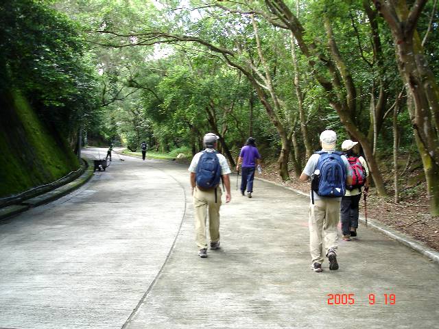 今日は約二年ぶりに馬鞍山山麓を歩く。雲は多いが久しぶりにガスもない晴れた天気、気温32度湿度82%! まだまだ暑い香港の九月、参加者は初参加の男性1名を加えて総勢11名。いつもの様にKCR“大學 (University)”からタクシ−で“馬鞍山村”(Ma On Shan Tsuen)まで。しばらく舗装路を歩いた後いよいよ“昴平”(Ngong Ping)高原の入口で“大金鐘”(Pyramid Hill) の麓の標識点までの登り坂が続く。峠に着くといつの間にか新しい東屋が立っていた。ここはMHT-4-のル−ト上で左手北側へ向かうと“馬鞍山”(Ma On Shan)へ至る。
