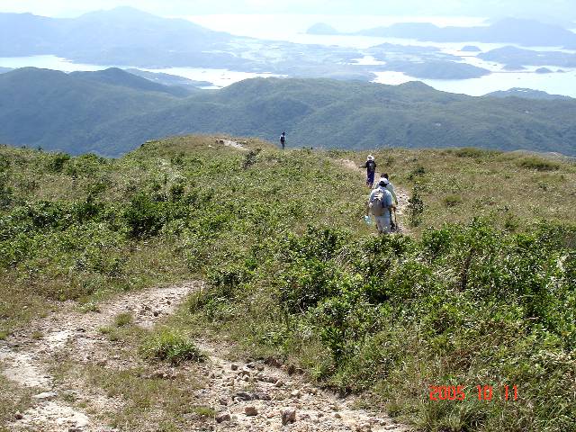 ↓”北潭凹”のバス停斜め前、MHT-3-始点とは反対側の東屋で出発前の記念写真【写真No.01】、東屋裏手の林を抜けて【03】、、、いきなりガレ道登りが正面のピ−クまで! 最初のピ−クから振り返ってみるとMHT-3-の“牛耳石山”(Ngau Yee Shek Shan)【05】、頂きまで続くMHT-3-が見える。 左手下は“土瓜坪”(To Kwa Peng)”の湾【07】 ↓また前方に次のピ−ク! そして一旦ガレ道下り、、、二番目のピ−クから見た光景、左手東側に切っ先鋭い嶺は“シャ−プピ−ク”と“赤徑”(Chek Keng)の湾【10】。今歩いてきたル−ト【11】と南西側には“西貢”の海と島々【12】。小さなコブを越え、、、前方右手には目指す“大枕蓋”【13】。登っては下り、、、 ↓下ってはまた登る小アップダウン行が続く、、、“西貢東郊野公園”内陸部、雄大な山並みが続く絶好のハイキング・コ−ス! またまた一旦下って三つ目のピ−ク肩を目指す。距離的にはここの登りが一番長い。ガレ道登りが続いてやっと肩まで登りつく。“シャ−プ・ピ−ク”をバックに撮ったつもりだったが?【19】、、、この後、山腹のスロ−プを経て、、、(紫色が苦手なデジカメだが、巧く撮る要領が解ってきたぞ〜【21】) ↓再びその美景を現した“シャ−プピ−ク”と“赤徑”の湾【23】、この写真はPC壁紙にピッタシ!、、、さらに登って次はこの標識【24】から右手の山裾脇道に入る、、、やがて再度左手の山の肩付近に到着、間近になった“大枕蓋”【27】。ここからチョット下って”鹿湖郊遊徑”との交差地点に合流【28】 ↓この三叉路の標識【29】の“萬宜水庫”方面に直進、これより最後の登りが”大枕蓋”まで続く。一しきり階段を登り切った所から振り返ると“牌額山”(Pai Ngak Shan) と裾野を走る“鹿湖郊遊徑”【31】、、、緩やかな登り坂が続く、、、最後のガレ道を登って頂上408mの三角点にタッチ! “萬宜水庫”をバックに熟女二人!【34】、、、そして記念写真二発【35、36】 ↓素晴らしい景観が広がる! “西貢”の海と島々【37】、広がる雄大な山並み【38】、“萬宜水庫”の手前のダム付近【39】、さらに一番奥にあるダムまでも見える【40】。“西貢”の“夫婦島”ならぬ“大洲”(Tai Chau)、“尖洲”(Tsim Chau) の二つの小島【41】、先ほどの“牌額山”とその向こうに“大蚊山”(Tai Mun Shan) とチョッピリ“シャプ−ピ−ク”の頭も【42】 ↓景色を堪能して下山開始、緩やかなスロ−プと所々歩き難い急なガレ坂道が続く【44】、、、近づく”萬宜水庫”ダムと対岸の山は“大蛇頂”(Tai She Teng)【45】、、、コブを二つ、三つと越えては下り、下っては越えて、、、この道の先にもう二つ【48】、あれが最後のコブだッ!、、、いよいよ間近に迫った紺碧の人口湖【49】 ↓最後のガレ道を下る一行【50】、、、階段を登って最後のコブを越えたら、、、その真下は“萬宜路”と”西湾路”の交差点広場の真上に出た【51】。休憩東屋、ここは“萬宜水庫”ダム北西側の最奥部だ。ここで今日の歩きを終え、幸い直ぐに来たタクシ−に飛び乗って一路“西貢”へ。お馴染みステ−キ・ハウスで最後の打上げ! |