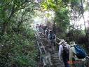 MHT-5-の中間点、“沙田Pass”から面白くもない舗装路のトレ−ルコ−スを避けて急階段を登り“慈雲山”から一旦“観坪路”(Kwun Ping Road) の舗装道路に降りて又直ぐに山越え、そして“大老山”北側麓のMHT-5-に抜ける山越えル−トの予定が、途中道を間違えて“大老山”南側の舗装路に出てしまった。そのまま“東山”(Tung Shan) の東屋から“東洋山”(Tung Yeung Shan) の麓の“基維爾営地”(Gilwell Camp Site) を抜けて下り坂の途中、MHT-5-と-4-のポイント地点手前から今度はMHT-4-に合流。 その後はMHT-4-をコ−ス通りに逆走、渓谷を下り“石芽背”(Shek Nga Pui) を経由して、“黄牛山”(West Buffalo) と“水牛山”(Buffalo Hill)の雄大な山並み中腹のなだらかな登り坂を行く。“水牛山”麓の“水牛Pass”を過ぎると今度は下り坂が“芽坪”(Mau Pin)まで続く。ここで我々はトレ−ルコ−スから外れ、“北港”(Pak Kong)までの長〜い下り坂。山道が終わって引水道の舗装道路歩き、そして“北港”の村落に着いた所でタクシーを拾って“西貢公路”経由“西貢”へ。歩行距離約10q、5時間程の歩きでした。 (注:MHT-5-,-4-:麥理浩徑,Maclehose Trail Stage-5-,-4-) |