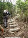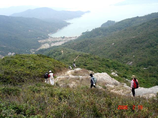 高速フェリ−は30分で“梅窩”(Mui Wo)着、幸い小雨は止んだがドンヨリした曇り空を見上げながら出発! フェリ−乗り場近くの海岸線に沿って比較的平坦なLTT-12-の逆行歩きだ! 間もなく着いた峠からLTT-12-を外れて引き続き海岸に沿って山の中腹を延々と歩いて行くと、やがて“拾望新村”(Shap Long San Tsuen) [地図では“十望新村”、望の亡は艮] と呼ばれる海岸沿いの寒村に辿り着く。ここから舗装路の坂道を登って“芝麻灣懲教所”(Chi Ma Wan Correctional Institution)、即ち香港の麻薬中毒患者の収容施設の横を通り抜け一旦海岸近くまでの下り。再び舗装路の坂道を登って行くと、間もなく道は林道となり小さな貯水池へ至る。 ここからが山道登り坂! 急な坂道ではないが林道を歩いて半島のほぼ中央、“龍尾”(Lung Mei) と呼ばれる峠に到着。この峠は“大浪灣”(Tai Long Wan) の海岸まで直行する下り道、もう一本は“ニ浪灣”(Yi Long Wan)へ至る道、そして今日の目的地“老人山”への登山口となる三つのコ−スの中継地点。長〜い階段を登ってやっと到着した“老人山”山頂からの眺めはうす曇り空ながら比較的空気が澄んでてかなりの絶景! 一旦谷部まで下り再度急階段を登ってすぐ隣の無名のハゲ山“Uピ−ク”302m にも登る。以前一度調べたらここも“老人山”の連山らしい! 眼下に見下ろした“貝澳灣”(Pui O Wan) の海岸は仲間達もアッ、と驚く絶景! そして“芝麻灣道”(Chi Ma Wan Rd.) までの下り階段。“芝麻灣道”の舗装道路を“戯田”(HamTin)〜“貝澳”(Pui O)と歩き、最後は“嶼南道”(South Lantau Rd.)のバス道路に出てFinish! 約12km弱の歩き。 バスで出発点の“梅窩”まで、今日の〆はフェリ−乗り場近くの海鮮屋でした。 (注:LTT-12-:Lantau Trail (鳳凰徑) Stage.-12-) |