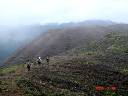 Japan-OG、T.Reikoさんを迎えての今日のハイキング、出発時は霧雨小雨模様で心配したが、その後は幸い小雨も降らず、無事に予定のコ−スを歩く事が出来ました。曇ってた割りにはガスは薄く、空気も澄んでいて思ったより素晴らしい景観を楽しめました。それにしても今日の泥んこ道で靴はもちろん、ズボンまで泥だらけ、後の始末が大変だ! 私ャ−自分でやらないから良いけど!(^_^)