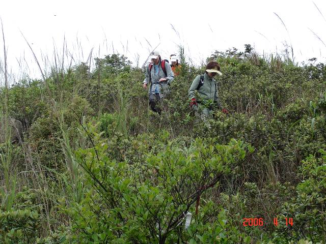 香港は4月14日(金)〜17日(月)の4日間、“Easter Holiday”(復活祭)の連休! その初日今日14日は一年10ヶ月ぶり二度目の“青衣”(Tsing Yi) にある“三支香”(San Chi Heung) 334mに登る。この山は香港国際空港へ渡る“青馬大橋”(Tsing Ma Bridge)が掛かる島、“青衣”の南側にある山。今朝のTV予報では気温18−21度、湿度88%でちょっと涼しい天気だが相変わらずの曇天! MTR“茘景”(Lai King)駅のプラット・ホ−ムに集まった仲間は予想に反して6名。連休なので参加者は少ないのでは? と思っていたが!! 前回は初回だったし地図も無いので参考資料を探して予習をしたが今回は二回目、MTR“青衣”駅からタクシ−で“青芋街”(Tsing Chin St.) と云う小さな道に入って直ぐの“保良局陳百強??青衣學校”と云う建物の近くの登山口までスム−スに行き着く。そこからいきなり階段登り、先ずは“一支香”までの登り、急階段から墓地の脇のなだらか階段登りに変わって頂上262m の東屋へ。そこから一旦下って次は“二支香”321m まで。前回ここは山道登り坂だったが今回はイヤな舗装階段に変わっていた。またここの頂上には大岩の上に観音像が有ったが今回は破損していた、心無い者のイタズラか? そして再度下って最後の主峰“三支香”(San Chi Heung) 334m までも舗装階段が造られていた。全く余計な事をしてくれるもんだッ! と思いつつ急階段を登って“三支香”の頂上三角点に到着。 “三支香”頂上は本来360度の景観が望めるが曇天ではそれも無理、遠景は望めなかったが近距離の風景はガスも少なくてまぁ〜まぁ〜だった。そして南側に下山、この下山ル−トはかなり荒れたガレ道でかなりの急勾配、さらに前日の雨か?朝の露か? ヤブと潅木が密生したル−トを下ってズボンも靴も濡れ濡れ! 前回よりもさらにル−トは荒れていたので、多分誰もここを通らないのだろう? やっと最後、火力発電所のかなり右手(西側)、倉庫のような建物の傍、“青衣西路”に降り立って今日の歩きをFinish! タクシ−でMTR“青衣”駅まで。約5Km弱、3時間の歩きの打上げはMTR“青衣”駅構内、飲茶の店でした。 |