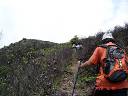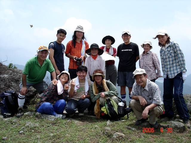↓“北潭涌”のバスタ−ミナル、公園入り口の案内板の前で出発前の記念写真【写真No.01】。公園の一番左端の最奥部、小さな駐車場の隅が出発点【02】、標識も何もないが藪の中に目印の布切れとル−トも見える。いきなりヤブ漕ぎ、この様な【03】荒れ道を登り出す! 直ぐに汗ダクになって一しきり登ったらやっと平地【04】。ここで一息ついて再度潅木と草に覆われた細道を登り出す、、、途中振り返ると西貢“斬竹灣”【06】。直ぐに前方の視界が開けたと思ったら何とッ! 周囲一面焼け野原【07】 ↓山火事か?野焼きの跡か? 焼けた斜面を登って行く、、、お陰で見通しは良いが、あまりの暑さ、苦しさに堪らず途中一休み【09】、、、さらに登ると左上手に頂上が見えてきた【10】。焼け跡の低い潅木の間を縫って登る一行、、、下を見ると“北潭涌”辺りの民家と左手にMHTに通じる“西貢萬宜路”(Sai Kung Man Yee Rd.)も【12】、その右手は高度が増したのが解かる“斬竹灣”【13】。やっと肩付近まで登り着く【14】 ↓そして“大[土敦]”頂上317mへ到着【15】。頂上からの“西貢”の海の俯瞰、海の向こうはゴルフ場の島、"Jockey Club Golf Couse"“KAU西洲”(Kau Sai Chau)【16】、南側真下の“斬竹灣”【17】、そして内陸東北部、遥か彼方には“シャ−プピ−ク”の三角峰も【18】。小休止と全員で三角点を囲んで記念写真一発! その後、北西方面に向かって快適な草原の尾根歩き【20】 ↓間もなく正面左手に見えてきた“無名ピ−ク”の三角峰【22】。道は徐々に潅木の中を通りやがて大きく左にカ−ブ、、、三角峰が近づいて来た【26】、、、“無名ピ−ク”頂上手前から見た“KAU西洲”【28】 ↓そして“無名ピ-ク”304m頂上! ここから見た“KAU西洲”の西側の海【29】。一方、北側内陸部の“雷打石”379m の尾根ル−ト【30】、西側彼方には雲に隠れた“馬鞍山”(Ma On Shan)702mも【31】。ここでも壊れた三角点を囲んで記念写真! 今度は北側に向かって下山開始、急勾配の荒れ道を恐る恐る下る一行【33、34】、新緑が映える山間部。 ↓間もなく全員麓の標識点に降り立った。ここは左に進むと“斬竹灣”【37】、反対に右に行くと“北潭涌”【38】への三叉路。地図上実線表示の山間ル−トで、“北潭涌”から“大[土敦]”の北側を周って“大網仔”を経由し、バス道路の“大網仔路”まで至るハイキングコ−スの丁度中間点だ! ここから見上げた今下ってきた“無名ピ−ク”【39】。標識の“斬竹灣”方面へ向かって、、、途中の標識から右折【41】、、、階段下りが続いた後は、、、 ↓谷間の鬱蒼たる森林道を下る、、、やがてまた“斬竹灣”標識【45】、そこを左折、、、所どころ昼なお暗き森の中の歩きはなかなか快適な森林浴、、、次の標識【48】からまた左へ、、、 ↓間もなく森林道を抜けたら今度は徐々に登り坂に差し掛かる。やがて低い尾根まで登りつくと左手東側に見えた山並み【50】は、先ほどの“無名ピ−ク(左)と“大[土敦]”(右)、、、方や右手遠方は“西貢”の街並み【51】。更に登って行くと、この尾根道で一番高い“長山”165m の三角点【53】に着いて一休み、、、ここから見た左手“大[土敦]”とその右下の“大網仔路”バス道路【54】。右手の海を眺めながら尾根道歩きは続く【56】、、、 ↓やがて右手と正面に“西貢”の海が広がってきた。尾根道の最後、こんな低い峠からの展望とは思えないほど雄大で絵になる光景が広がる。ここからの展望は実に素晴らしい“西貢”の海の一大パノラマ! ゴルフ場の島“KAU西洲”(Kau Sai Chau)【57】、遠くの茶色の土手【58、59】は“萬宜水庫”(High Island Reservoir)ダム堤防とその右手の“大蛇頂”(Tai She Teng) 278m。久しぶりに女性達と記念写真二発(^_^)! そして最後の下山【63】 ↓海を正面に見下ろしながら下山、、、長い階段下りが続く、、、左下のバス道路脇に見える塔【66】は第二次大戦時、香港人の“抗日英雄記念碑”である“烈士碑園”、立ち寄りたくない所だッ! 間もなく“大網仔路”のバス道路が見えて来た【67】、、、最後の階段を下って【69】バス道路に降り立った。ここで居合わせたタクシ−とミニバスに分乗、一路“西貢”へ、、、いつもの中華店で今日最後の打ち上げ!【70】 ↓先週よりも気温も湿度も低かったが、それでも暑い一日だった。短距離ながら変化に飛んだコ−スで満足の一日! “西貢”の街角で見つけた珍しい花二花! |