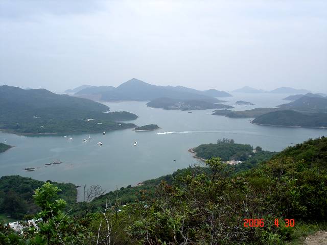 そのバスタ−ミナルの一番左手奥にある駐車場の隅から“大[土敦]”への登山口があるが標識も何もない、木にぶら下がった誰かが付けてくれた布切れの目印だけ! いきなりヤブの中に突入するル−トから始まる。この山は比較的海岸から近く、地図上点線ル-トが頂上まで直線的に延びている。前回もそうだったがマイナ−な山であまり人が登る訳でもなく、ヤブ漕ぎの荒れたガレ道登りが続く。100m弱ヤブの急坂を登って一息! そこから先も潅木や草が生い茂っているがル−トはかなりハッキリしている。途中から山火事か? 今回は山の斜面一帯、草木が焼けた後の急斜面の直登坂が続く。途中、数回呼吸を整えてやっと317mの頂上に到達。海抜ゼロからの登りと暑さで結構きつかった。 頂上からの眺めは南側真下の“斬竹灣”(Tsam Chuk Wan)、後ろ北側には“西貢”内陸部の山並みが広がる素晴らしい眺め! 北側のMHT-3-ル−ト近く、以前登った“雷打石”(Lui Ta Shek) 379mも見える。下山コ−スは北側の“無名ピ-ク”304m まで尾根の草原を歩き“無名ピ-ク”の頂上から今度は一気に荒れた急坂を下り切って谷間まで。それからしばらく鬱蒼たる谷間の林道歩きが続き、地図上“蛇頭”(She Tau) と呼ばれる辺りからやがて尾根に続く登り坂。 尾根道の一番高い地点が“長山”(Cheung Shan) と云う165m の峠。そこから更に尾根伝いの道を行くと前方に“西貢”の海と島々を一望俯瞰できる絶好のポイントに到着。後は長い階段を下って出発点の“北潭涌”の手前、バス道路の“大網仔路”に降り立った。そこは“烈士碑園”(Monument) と呼ばれる第二次大戦時、香港の“抗日英雄記念碑”がある我々日本人にはイヤな場所の近く! 約6q弱の短距離ながら変化に飛んだ楽しいコ−ス。今日の打上げは最近良く利用する“西貢”の中華店だった! (MHT-3-:Maclehose Trail (麥理浩徑) Stage-3-) |