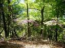 【16】一見、普通の広葉樹林帯ですが、低木や下草が全く生えていません。 【17】伐採地からは鷹ノ巣山が望めました。 【18】同じ伐採地から東を見ると、本仁田山でしょうか。 【19】尾根の右は鹿除けフェンスが暫く続きます。 【20】時折吹き抜ける風が心地良い。 【21】石灰岩の岩場が出てきました。ちょっとだけアルペン気分が味わえます。 |