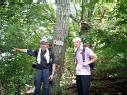 で、なんとか捻り出した目的地は「文台山&尾崎山」。道志山塊の盟主、御正体山から北西に延びる尾根の一角を占める山です。「道志山塊」の山と呼ぶのには少々違和感があり、かといって「御坂山塊」でもなく、「中央沿線の山」のカテゴリーにも属さない、ちょっと不憫な山。強いて言えば、「富士山周辺の山」でしょうか。昭文社の「山と高原地図シリーズ」では、「高尾・陣馬」の片隅に辛うじて文台山が載っているのみで、もうひとつの尾崎山は図幅からこぼれています。文台山は地元では大野山、またの名を尻山、ケツ山と呼ばれているそうで、たしかに麓から見上げると双耳峰で、どちらのピークも柔ら かな曲線を描いていて言い得て妙です。 当日は朝から湿度が高く、低山歩きには最悪の日和。参加者は暑さにめっぽう強い鵜飼隊長に、オールラウンダー高野氏を加えた「立高山岳部OB三人衆」となりました。結果的に全行程を通じて終始樹林帯の中なので、さほど日射に堪えることはありません。登山口から文台山まで、「下細野シルバークラブ」が立てた道標が実に適所にあってとても判りやすい。この山への思いが感じられます。文台山からはいったん、300mあまり急降下することになりますが、こちらも適当な間隔で赤テープがあり、迷うことはありません。最低鞍部で昼食をとりながら空を見上げれば、雲は最早秋の雰囲気。 ここから尾崎山への登り返し、そして古渡集落への下りは、到る処蜘蛛の巣だらけで閉口しました。誰にも会うことはありませんでしたし、きっとここ暫く誰も登っていないのでしょう。篤志家向けコースを自虐的季節に登ったということなのでしょう。狙い通りの時間帯に下界へ下りると気温35℃、アスファルトの照り返しがきつく茹だるような暑さなので、このままではとても立ち寄り湯まで保ちそうになく、途中のファミレスで生ビール(480円)をあおりました。汗が引かない間に飲むビールは最高です。それにしても彼岸まであと2週間だというのにこの暑さ、やはり日本も熱帯化しているのかも知れません。 「渓山荘」(立ち寄り湯:800円)で汗を流した後、東桂駅で鵜飼隊長が目ざとく酒屋を見つけてアルコールを調達し、さらに巧い具合にリクライニングシートの「ホリデー快速河口湖号」に乗車、そのまま立川に出て、最後は駅で待ち合わせた伊藤さんといっしょに焼鳥屋で今後の計画について話し合った次第。今シーズンの「夏」はこれでおしまいかも知れません、皆さん、そろそろ夏休みを終えて山に復帰しましょう! 本日の実働時間:4時間10分 本日の累積登高差:863m 本日の踏破距離:10.2km |