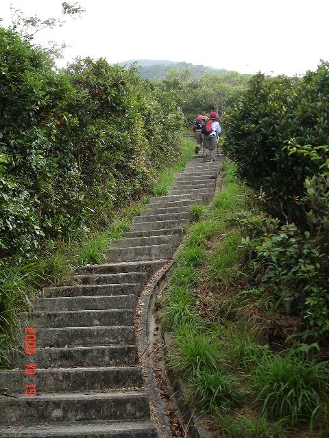 今日もまた女性仲間のリクエストに応えて約二年ぶりに香港島の“紫羅蘭山”(Violet Hill)〜“双崗山”(The Twins)へ。このコ−スはWST-1-の逆走! 天気は今にも雨が降りそうな曇り、ガスが濃い天気、朝の気温28度湿度87%。集合場所のMTR(地下鉄)“銅鑼灣”(Causeway Bay) 駅“に集まった仲間は計20名と先週に引き続き大人数! “そごう”デパ−トの裏からミニバスNO."5C"に乗る予定だったが、20名は乗れない。そこでタクシ−4台に分乗してミニバスで“黄泥涌峡”(Wong Nai Chung Gap) の“陽明山荘”(HK Parkview)のすぐ下まで、そこからいきなり急階段のスタ−ト。
