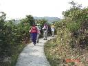 “筌灣”からタクシ−三台に分乗して“筌錦公路”(Route Twisk) の途中にある“大帽山”(Tai Mo Shan) の登山口“筌錦[土幼]”(Tsuen Kam Au)まで。ここはMHT-9-のスタ−ト地点で、今日の我々もこのトレ−ルコ−スからスタ−ト。なだらかな起伏の舗装路を約40分歩いてトレ−ル標識M160の地点を過ぎて間もなくコ−スを外れ、左側の“蓮花山”(Lin Fa Shan) 方面へ向かう道に入る。さらに舗装道路が途切れる場所まで進むと、その辺りが“蓮花山”と呼ばれる丘陵地帯。中腹高原の曲りくねった山道をしばらく進むと間もなく“石龍拱”へ至る。 中腹の道から一気に頂上へ。今日はガスっぽい天気で折角の景観もそこそこ! “青馬大橋”や“汀九大橋”の優雅な姿、“筌灣”の街並みなどを見た後下山。今回は7年前に一度だけ行った西側の“深井”(Sham Tseng) 方面を目指して先ず“元筌古道”(Yuen Tsuen Ancient Trail)と云う山間のル−トを行く。このコ−スは木陰が多いなかなか快適な散策路。そして途中の沢から合流する舗装路に出て、そこを南側にしばらく行くと、途中見えた布切れの印を頼りに地図上の点線ル−トに初めて進んでみる。再度、森の中の歩きを経て下った所の三叉路が“清快塘”(Tsing Fai Tong) に近い“深井”へ通じる舗装小道だった。後はそのまま“深井”まで下って7年前に一度来た事がある懐かしいハト料理屋に到着して今日の歩きをFinish、約10qの歩きでした。 (注:MHT-9-:Maclehose Trail(麥理浩徑) Stage-9-) |