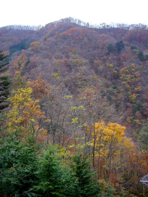 【02】入口の道標はご覧の通りです。 【03】三つ峠山を仰ぎ見る。ややガスっていますね。 【04】木々の隙間から、時々鶴ヶ鳥屋山が見え隠れします。 【05】こちらは目指す本社ヶ丸。なんでそんな名前が付いたのでしょうか。 【06】標高が高いところでは落葉松もすっかり葉を落としています。 【07】これが「からかさ岩」。突如現れました。 |