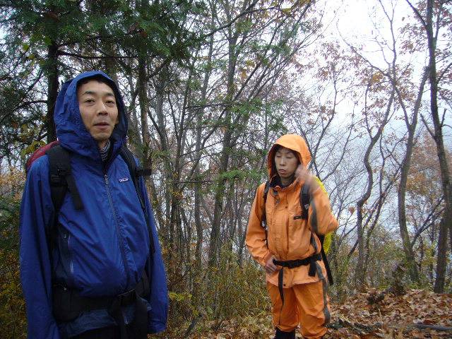 →前回はこちらです。ただし、登頂ルートはまだトレースしていない「むすび山」から続く西尾根にしました。一日中雨だったのは、大菩薩峠から丹波へ下った2005年10月9日以来→こちらをご覧下さい、実に14ヶ月ぶりです。この時期、低気圧が太平洋岸を掠めるときには東京でも雪が降るものですが、気温が多少高かったせいで雪ではなく、冷たい雨となりました。参加者は風邪が