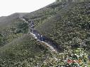 ↓タクシ−は舗装道路の“鶴藪道”(Hok Tau Rd.)、右手のキャンプ場入り口前でSTOP【写真No.01】、しばらく舗装路の歩きが続きやがて“鶴藪水塘”【02】前で行き止まり。ダムの前で出発前の記念写真【03】を撮って堤防を渡り、ダム左側の道を行って登山口近くの東屋まで【05】。ゲ−ト【06】は光って見えないがこれをくぐったら直ぐに左折、その先にあるこの標識【07】 ↓ここが“八仙嶺”の登山口だ!【08】。いきなり階段登り、、、階段が終わった所で正面頭上に忽然と現れ出でたる“屏風山”【09】とその傍の⇒“標距柱”(Distance Post)【10】。、、、ここからが本格的な登り階段の始まりだ! 毎度の事ながらこの最初の登りがキツイ! 今日は特に風邪気味のせいか息切れが激しい!、、、ヒィ−ヒィ−ゼィゼィ云いながら必死に登る、、、堪らず途中の鎖の手摺が付いた所【12】で腰を下ろす、、、さぁ〜もう少し、、、やっと“屏風山”の麓、海抜400m程の肩下に到着して小休止【13】。南西遥かガスに霞む“九龍坑山”(Cloudy Hill)【14】 ↓ここ“屏風山”の麓に立つ標識【15】。さぁ−出発! “屏風山”西側をトラバ−スしながら登って行く【16】。ちょっと石段登りが続いた後、前方の視界が広がり谷間へ出た【18】。ここまで登ったら一安心!、、、そして“丹竹坑”方面への分岐点に到着【19、20】。大勢の欧米人(イタリア人)ハイカ−も! 北側目前には先週登った“龜頭嶺”(Kwai Tau Leng)【21】 ↓この近くは“屏風山”北側の雄大な草原山麓が広がる地帯! しばらく山裾を直進するとやがて目前に広がる大景観【24】。“屏風山”のピ−クから降りた所にある標識【25】を過ぎると右手は断崖絶壁【26】。“屏風山”の尾根伝いの道を行く、、、南側が切り立った崖、北側は雄大な裾野となって広がる景観が続く、、、“屏風山”【27】を背にしながら行く。この先、最初のコブを越える一行【28】 ↓体調がもう一つのこちらはコブの裾野を行く【29】、、、直ぐに二つ目のコブ【30】、、、北東方面の中国国境の町“沙頭角”(Sha Tau Kok) はモヤの中【31】。三つ目のコブに向かって【32】、、、ふと振り向けば“屏風山”の素晴らしいスロ−プ【34】、、、三つ目のコブの上【35】 ↓尾根伝いの道は徐々に登り坂から下り坂に変わり、、、間もなく“黄嶺”へ至る再度の登り坂【36】。 いよいよ今日の最高峰“黄嶺”へのアタック【37】、そして頂上639m に到着【38】。ガスで霞んではいるが南側右手下は“吐露港”(Tolo Harbour)【39】。そして今まで歩いて来たル−ト【40】とその反対側東側のこれから進む“犁壁山”方面【41】。一旦下ってWSTに戻り右側(東)へ【42】、、、 ↓“黄嶺”麓の標識【43】、ここを右手(東)に進むと直ぐにこの標識【44】。左へ進むと“横七古道”(Wang Tsai Trail)を経て最後はWST-10-、ファイナル点の“南涌”(Nam Chung)や“鹿頚”(Luk Keng)方面に至るがそのまま直進。目前に広がる雄大な山並み【45】、、、次のピ−ク“犁壁山”を目指して尾根道歩きは続く、、、右手“吐露港”の左側微かに“船灣淡水湖”(Plover Cove Reservoir)の堤防が見えてきた【46】。階段を登って、、、間もなく“犁壁山”550m山頂【48】、、、まだまだ続く前方の山並み ↓ここまではまだ“八仙嶺”の入り口までも着いてない! 左手前方(東)に見えてきた“吊燈籠”(Tiu Tang Lung)【50】、右手下(南)には“大尾篤”(Tai Mei Tuk)の街並み【51】、後ろを振り返れば【52】、、、これより岩場を越えて一旦下り、いよいよ“八仙嶺”に差し掛かる【54】。