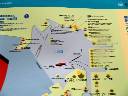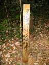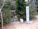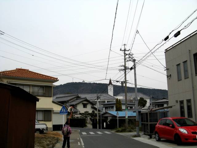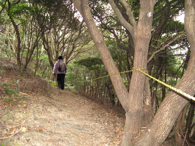 ↓名鉄の東の終点“豊橋”駅の北口、一旦外に出て右手の階段を下った所にある豊鉄、渥美線の“新豊橋”駅【写真No,01】。こんな電車【02】に乗っていざ出発! 料金は終点の“三河田原”駅まで\510。電車はロ−カル単線で途中の駅二箇所で離合待ち合わせ、乗客は時間的にか学生が多かった。ノンビリと車窓の風景を楽しみながら、やがて右手の山の上に白い建物と風車が見える。あれが今日の目的の山だ、と思ってる内に08:52終点の“三河田原”駅【03】に到着。駅正面の道をそのまま北に向かって行って国道259号【04】を左折。建物の間、右手に“蔵王山”【05】。5分ほど歩いたら左手に“田原まつり会館”【06】、ここから二つ目の信号“新町”を右折、突き当りまで行って左へ、、、前方に森が見えてきた【07】 ↓その森は“神明社”【08】と云う神社の森だった。ここからまた右へ進む【09】、、、するとこの交差点【10】の先は“成章高等学校”、ここも右へ進む【11】、、、すると右手の“池の原公園”の先が三叉路【12】。右手へ入ってみたら“渡辺崋山”幽居の史跡だった!【13、14】 ↓これが復元された“渡辺崋山”が幽閉されていたと云う屋敷跡【15】と周囲の庭【16】。この史跡を出たらそこは“椿のみち”【17】と呼ばれる両側が椿の木で覆われた小道だった【18、19】。もう枯れたのか、殆ど椿は見れなかったけど? またこの周辺は旧武家屋敷跡らしい! ツバキ並木を抜けたら今度は小公園?【21】 ↓09:30、この綺麗に整備された公園も“つばき公園”【22】。結局、先の“池の原公園”から“つばきの道”を経由してここ“つばき公園”までで椿はオワリ! 公園を抜け【23】、そのまま進むと左手の何だか知らない畑【24】の先は竹林とその中は何やら屋敷跡?【25】。入ってみたら“岡田虎二郎”先生と云う地元の有名宗教家?生誕の地らしかった。玄関前を進んだらこんな標識【26】、“蔵王山権現の森”は向かって右手へ、、、囲いの有る大きな屋敷が並ぶ道【27】を歩いて行くと間もなく“町道姫島港線”の交差点【28】 ↓交差点の左に建つ標識【29】を確認しながらそのまま正面へ渡ると見えてきた“権現の森”【30】。この門【31】が“蔵王山”への登山口となる。09:45スタ−ト! 正面にあった“蔵王山権現の森”の案内板【32】、周囲はよく整備された公園になっているが【33】、薄ら寒い今日の天候では人っ子一人居ない静寂そのもの。案内板の左手に有った“宮川橋”【34】を渡って進むとまっすぐに伸びた階段あり【35】、その右手には“健康の道”と書かれた小さな標識。 ↓ダラダラ階段を登り出す【36】、、、しかし直ぐに右手に見える“健康の道”へ移動【37】、、、ジャリ道を進んで左にカ−ブしたところ、右手の草むらにこんな小標識【38】、“健康の道”もダラダラ坂の様だし、こっちの方が面白そうだから行って見るか? と“冒険の道”とやらに踏み入る。五合目までのショ−トカット・ル−トらしい、どんな冒険が待っているか? こちらは本当の山道で傾斜もきつい【39】、、、傾斜道にはご親切にロ−プも!【40】、、、ル−トは一旦下って今度は急傾斜登り【41】、、、やっぱりチョットきついけどこちらのル−トが面白い【42】、、、 ↓、と思ってたら直ぐに小さな広場へ出た【43】、10:10ここで小休止! 右手の標識を見たらここが五合目だった【44】。小休止中に小雨が降り出して慌ててザック・カバ−をかけたり、傘を出したり、、、この雨がひどくならなければ良いけどな〜? と心配しつつ再出発! 緩やか坂を登り出す【45】、、、途中に沢山建っている地元の小中学生が創った楽しい俳句を読みながらの“ハイク”行!(^_^)【46、47、48】、、、やがて六合目を通過【49】 ↓五合目を過ぎてからここまで二、三人のハイカ−と出会っただけ【50】。木々の間から小雨がパラついているが幸いひどくはならないようだ?、、、間もなく前方が明るくなってきた【51】、、、そして10:30、八合目に到着【52】。“蔵王権現”の旗指し物が並ぶ【53】先、右手南側の視界が広がった! “田原市”の町並み【54】とその右手、山並みの遥か彼方【55】が“渥美半島”突端か? ここはチョットした広場で後ろのこの階段【56】を上がると、、、 ↓こんな石像【57】、その左手上が“蔵王権現”正殿【58】。そして、その後ろに廻って坂を上がると【59】、公園のような広場に出て、そこを突っ切り上がると舗装路に合流した【60】。頂上はもう目前、大きな風車と大きなレストハウス! 舗装道路の左側の眺め【61】、、、その舗装路も突っ切って小道を登って行く【62】、、、そして10:40“蔵王山”山頂に到着【63】。間近で見ると巨大な風車!【63】、香港で見た風車を思い出した。 ↓渡り回廊【64】の様なところを上がってレストハウスへ、、、屋内は売店などが完備、その前後はベンチ等を備えた屋外展望台。最上階の4階まで上がってみた。するとそこは正に360度視界の大展望台! 総ガラス張りなので風も当たらず、オマケ