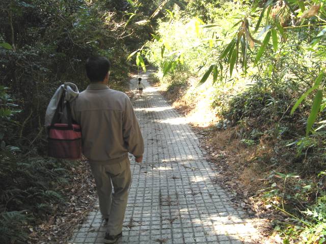 予め調べて分かったのは、“大山”を下山後“菜の花畑”や“伊良湖岬”までのアクセスがかなり不便な様子? 豊鉄バスは“三河田原”から渥美半島の南、太平洋側を走る路線は支線とかで本数も少なく、半島突端の“伊良湖岬”へも通ってない。逆に北、三河湾沿いに走る路線が本線とやらで、こちらも本数は少ないが岬まで通っているとか? となると登山スタ−ト地点の“大山下”から日に数本しか走っていない支線バスで半島北側の“保美”(ほび)まで行って、更にそこから“伊良湖”まで行く本線バスに乗り換える事になりそう! (全体図を参照) 各バス停の発着時間と“大山”登下山に要する時間を加味して凡その予定を立てた結果、新安城を早朝06:36に出発する事になった。 “大山下”までは予定どおり着いた。バス停から少し戻って目前の“大山”を目指して左折、麓に“白山比盗_社”(しらやまひめじんじゃ) が有り、その鳥居から右手の坂道を行く。土砂が流されたガレ道の急登坂、それが九十九折に延々と続く! 30分ほども急坂登りが続いてやっと鉄塔が有る場所について勾配が緩む、そこから更に10分ほど登ったら頂上。頂上は展望が利かないが、無線設備の先から見えた“伊良湖岬”方面の景観が実に素晴らしかった! 偶然にもスタ−ト地点から一緒だった親子連れ、お父さんと小学6年生、2年生の女の子二人、急坂登りでこの子達から徐々に距離を離されて結局頂上に着いた時は5分以上も差が有ったようで、、、若いもんには適わん! ともかく仲良し友達になっていろいろお喋りするうちに、お父さんから「伊良湖岬”に行くんだったら送ってやるよ!」と云われて感謝感激! 予想したより早く下山できそうなので“大山下”でバスを待つ時間がかなり長そうだったし本当に助かる。てな訳で元の“白山比盗_社”まで5人一緒に下山、その後お父さんの車で国道42号線を一路“伊良湖”方面へ。途中“菜の花畑”にも立ち寄って皆で遊んだり、、、 |