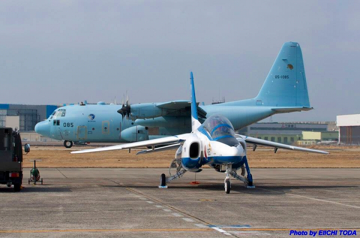 空中給油機KC-767に寄り添い飛行する岐阜基地から参加のXF-2A(502)